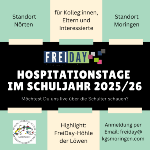 Die nächsten FreiDay-Hospitationstage an der KGS Moringen für Kolleg:innen, Erziehungsberechtigte und Interessierte finden